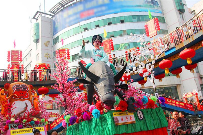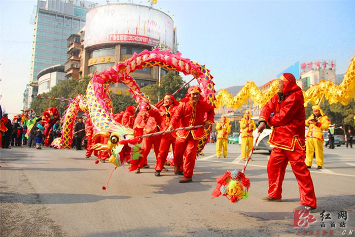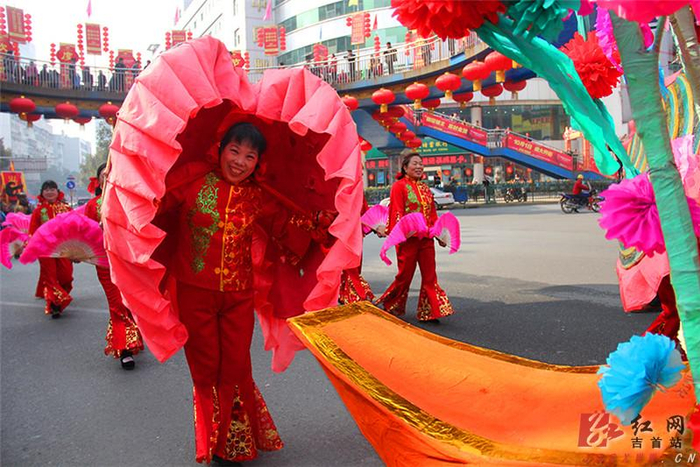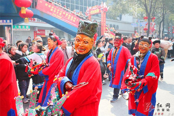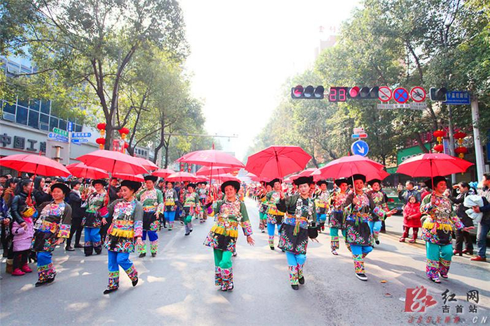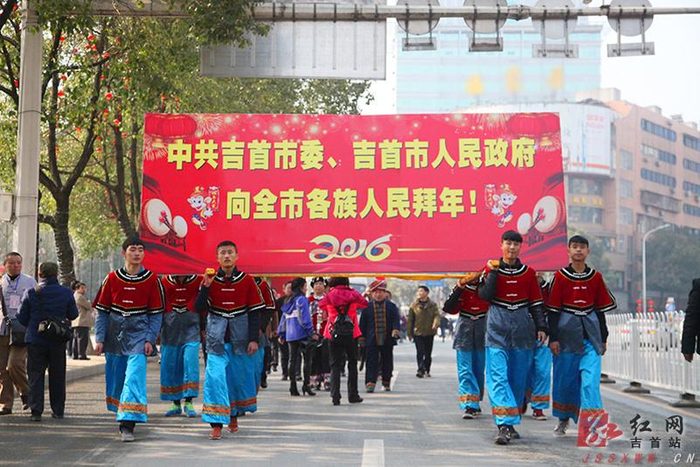 “正月迎春是吉首市沿承百年的习俗。人们通过’迎春’来祈求新年风调雨顺、五谷丰登。” 据吉首市文广新局副局长杨选民介绍, 吉首市历来十分注重对民族民俗文化的挖掘、整理和传承,每年正月都会举行大小不等游春活动。今年的游春活动以“神秘湘西 · 吉周吉年”为主题,把全市具有代表性、群众喜爱的非物质文化遗产项目进行全面展示,来自各乡镇街道2000千余名民间艺人带着苗歌、苗鼓、舞狮、舞龙、赶秋、摆手舞等诸多非遗项目走上街头。“用街头集中展演形式,为高居庙堂的非遗文化’接上地气’,同时为’养在深闺人不识’的湘西民族特色文化’通上天线’。”