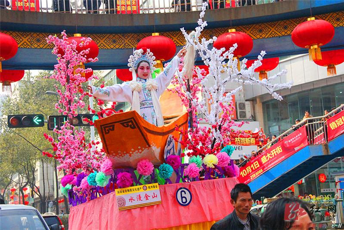 如果说西游记是中国人的“国民神话”,那孙悟空便是中国人尽皆知的“国民英雄”。适逢猴年,美猴王肯定不会缺席,造型各异的“齐天大圣们”或抓耳挠腮,或手持金箍棒,将《西游记》中经典选段呈现市民眼前。猴年主题让人大饱眼福,春牛图、天女散花、梁红玉挂帅等春也悉数登场。远看,碧浪滔天点缀云锦,云纹图飞檐环绕,气势不凡。近看,民族英雄罗荣光立于浪涛之上,身后精致的靠旗呈扇形展开,烘托出斑斓炫目的传统戏曲舞台效果。细看,罗荣光大将军正向往来的观众拱手行礼,送上祝愿恭贺新春。