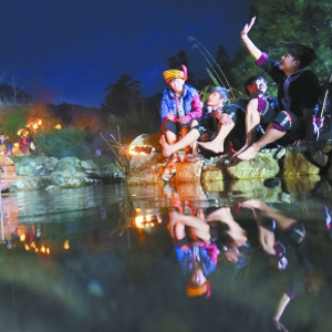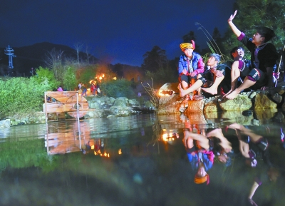 2月10日晚,江华瑶族自治县湘江乡庙子源村香草源,瑶家小伙洗完农具后在溪水边戏水。当晚,瑶族群众举行“送懒仪式”,寓意“人勤春来早”。湖南日报记者 唐俊 摄