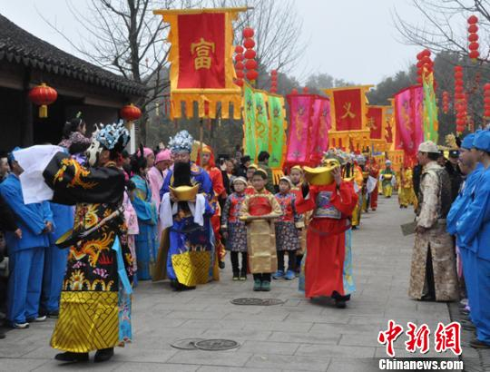 原标题:正月初五接财神 中国水乡周庄再现财神祭