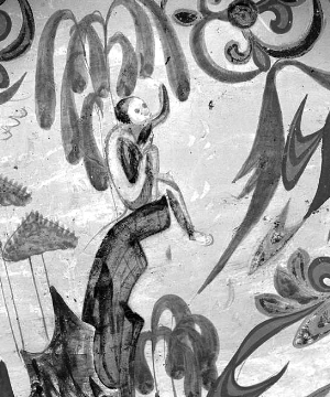 除了取经图外,莫高窟三层楼壁画中还有《西游记》。汪正一介绍,三层楼中曾绘有10幅《西游记》壁画,目前多数已经剥落,部分尚能辨认。上世纪初斯坦因、罗寄梅等人拍摄的莫高窟照片中,清晰保留着这些图像。汪正一说:“三层楼正门背面,孙悟空在空中驾云执棒,似在追赶云中之妖。唐僧身着大袖僧衣,颔首躬背。但壁面残破严重,难以考证画面的具体内容。”