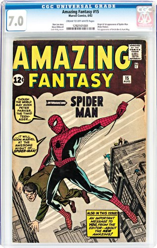 达拉斯赫里蒂奇拍卖行董事总经理艾伦指,第15期《惊奇幻想》是《蜘蛛侠》创刊号,相当珍贵,估计现存仅4000至5000本。本次拍卖的一本保存良好,簇新度得分为9.4分,因此身价不凡。