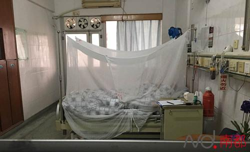目前患者在广州接受治疗。为防止其治疗期间出现蚊虫叮咬情况,病床外还架设了一条蚊帐。南都记者 王道斌 摄