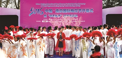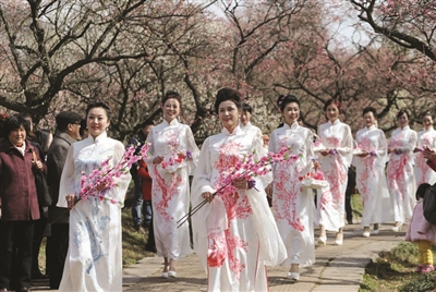 成功举办21届的中国南京国际梅花节现已成为品牌,每年都吸引了来自海内外的游客数十万人。与往年不同的是,今年的开幕式上120位“梅花仙子”身穿“陶玉梅”手绘旗袍,作为美丽的梅花使者,上演大型旗袍秀《中华韵》。她们通过不同颜色的梅花图案旗袍演绎南京六朝古都文化,让市民一睹“梅”与旗袍相结合的风采。