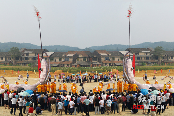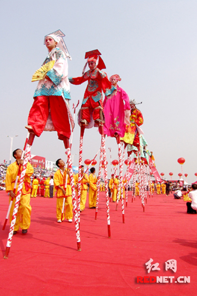 在传统灯市中,人们观看的不仅仅是灯,还有其他活动。比如益阳的“虾子起拱”,它现为湖南省非物质文化遗产。表演的“虾子”以竹木为架,彩布为衣,虾头约4米,主须为整根竹子,可达七八米长。由30多人掌握虾头,10多人牵扶虾身,10多人扶虾须,随虾头前进。表演时,按“三通密鼓,一槌惊锣”的节奏,在领舞者的指挥下,舞虾人高呼“虾子起拱”,虾头应声上扬,虾须朝天,意为高升。