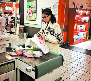 高圆圆逛超市买菜。