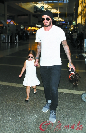 贝克汉姆与女儿情侣装。(CFP 图)