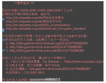 由于该病毒采用高强度的加密算法,以普通电脑的计算能力,就算花几万年也无法破解,只有病毒作者的私钥才能解密,如果中招,要么乖乖交赎金,要么就只能永远失去被病毒加密的文件。
