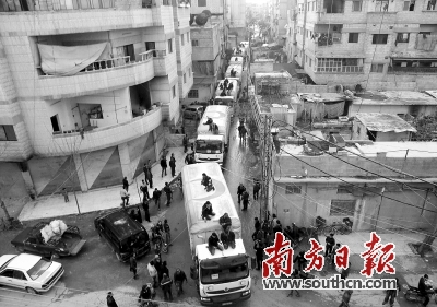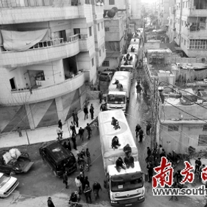 23日,装载人道救援物资的红新月会车队准备向被围困的叙利亚民众实施救援。新华社发