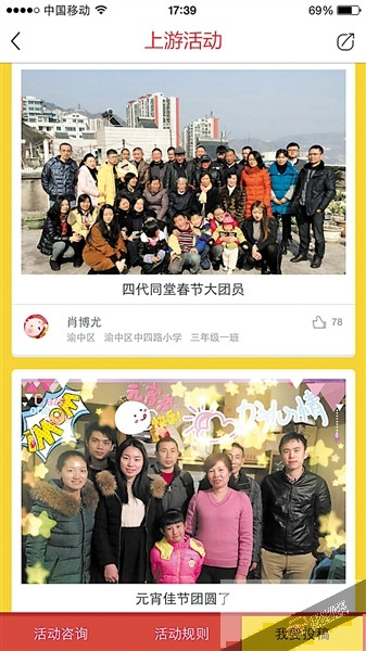 渝中区近几天感恩微信的发布量快速增长,点赞最高的一条就出自该区,单条点赞量已超过1.2万人次。“这次活动有着重要价值,为活动的成功点赞”,渝中区委宣传部常务副部长、区文明办主任蒋学荣说,一是把孩子的德育教育寓教于乐,利用传统春节参与亲情和感恩的体验,注重孩子内心启迪;二是带动了家长参与,强化了家庭教育,让父母认识传承家训家风的重要性,认识到家庭教育的重要性,认识到为人父母的责任,也从中体会到与孩子一起成长的快乐;三是让孩子认识到要过好节日是需要主动思考、积极动手,要多与人交流,多看多思多动手,才会有所收获,有所提高。