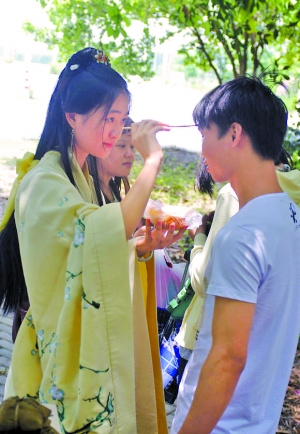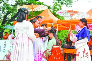 汉服社在校园里举办的女子笄礼