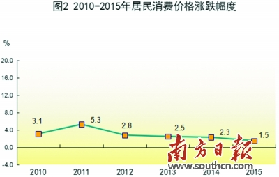 表3 2015年居民消费价格比上年涨跌幅度