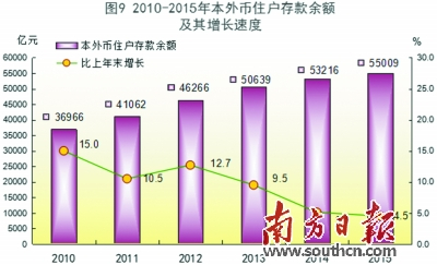 表16 2015年年末银行业金融机构本外币存贷款及其增长速度