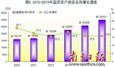 全年固定资产投资30031.20亿元,比上年增长15.8%。分投资主体看,国有经济投资6363.86亿元,增长9.3%;民间投资18052.95亿元,增长19.9%;港澳台、外商经济投资3478.99亿元,增长10.6%。分地区看,珠三角地区投资20048.69亿元,增长14.3%;东翼投资3613.56亿元,增长24.2%;西翼投资3120.31亿元,增长23.2%;山区投资3248.64亿元,增长10.4%。