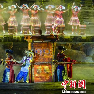 中新网长沙3月1日电 (记者 唐小晴)在历经“冬眠期”后,改编自文学巨匠沈从文原著的大型实景演出《边城》2016年演出季于3月1日晚在湖南凤凰古城森林剧场唯美开演。
