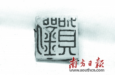 2日起在北京首都博物馆举行的《五色炫曜——南昌汉代海昏侯国考古成果展》,以高清投影的方式展出一枚“刘贺”玉印的印面。江西省文物考古研究所所长徐长青在发布会上透露,内棺中尚存墓主人遗骸痕迹,遗骸腰部位置有“刘贺”字样的玉印一枚。
