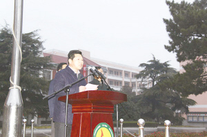 升旗仪式结束后,盐城市龙冈中学校长陈建权热情洋溢地致辞,他向全体师生表达了新春的祝福,并对过去一年来他们在学校教育发展中做出的努力与取得的成绩表示感谢与祝贺。他说,过去的一学期,同学们勤奋好学,用奖杯映射了活力青春。高三年级潘青鹏、李杰等6名同学在中学生物理学科奥林匹克竞赛(江苏赛区)中获奖。衣杰、徐晓彤等17名同学在江苏省中学生生物学科奥林匹克竞赛中获奖。蔡万成、葛浩等13名同学在中学生化学学科奥林匹克竞赛(江苏赛区)中获奖。王梓楠、黄诗涵等28名同学在省“苏教国际杯”中学生作文大赛中获奖。在江苏省第十四届“中学生与社会”作文大赛盐都区初赛中,蒋为平、王梓楠等8名同学获特等奖;周金萍、陈慧等20名同学获一等奖;高三(5)班宦思雨同学荣获复赛高中组一等奖。高三年级周正、程雅等6名同学在市高中英语师生读写大赛中获奖。王雄进、熊彦博等6名同学在区第二届师生书画篆刻作品大赛中获奖。