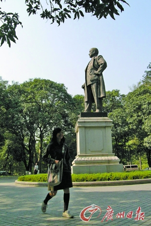 华南理工大学内的孙中山纪念铜像。 (资料图片)