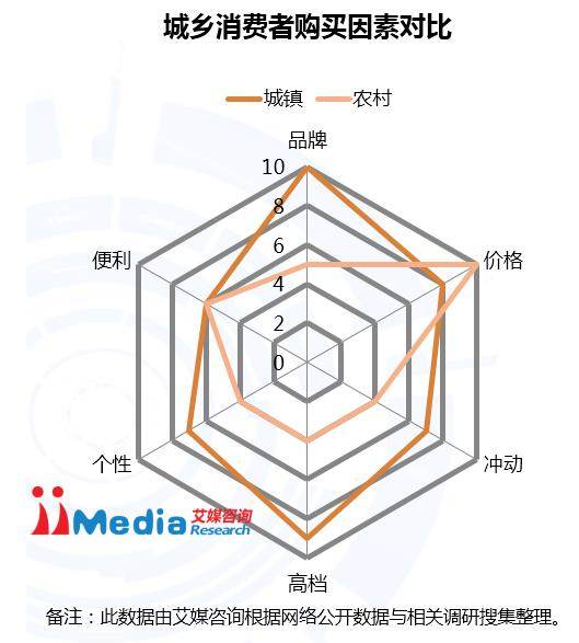 在消费偏好上,城市消费者看重外观和个性,价格与质量也是比较重要的考虑因素。而农村消费者则看重价格和质量,外观、高档和个性对农村消费者影响较小。