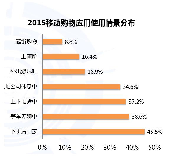iiMedia Research(艾媒咨询)数据显示,在移动购物应用的使用情景分布中,下班后回家使用占比最大,达到43.8%。有54.8%的用户会因为有促销优惠而浏览移动购物应用,移动营销对电商平台意义重大。