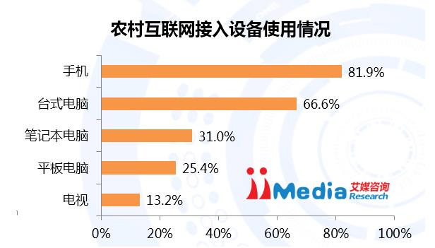2015年我国网民中农村网民占比为28.4%,规模达1.95亿。农村网民在整体网民中的占比增加,规模增长速度是城镇的近2倍。截至2015年上半年,农村互联网接入设备中手机以81.9%大幅度领先。由于农村地区智能手机普及率的不断上升及农村用户对移动端有更好的适应性,这部分人群移动互联网普及的难度相对较低,将来可转化的空间较大。
