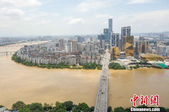 资料图:2015年6月15日,广西柳州柳江迎来洪水。当日早上7时,实时水位显示为82.24米,距离警戒水位82.5米仅差0.26米。 黄威铭 摄