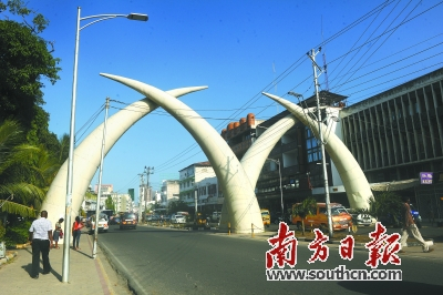 告别阿罗尼,笔者漫步蒙巴萨街头。如今人口约50万的蒙巴萨显得别有风情,独特的斯瓦西里文化里,弥漫着穆斯林文化、印度文化和基督教文化氛围。建于20世纪50年代、两组交叉的四个巨大象牙雕塑,分别横跨市中心大街左右通道,其别具匠心与历史传说引来各国游人流连忘返。