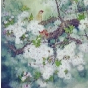 画家对于画面诗境的营造与升华,体现了画家以心写花、用情绘花的精神与情感,当你读“夜雨浥轻尘,朝来玉色新”、“清风拂拂梨花影,疑却纷纷雪落时”、“青浓处处闻啼鸟”、“乍暖微寒沐春风”等画题时,也不难体会画家是如何将光晕的景深转换为诗意的情境的。