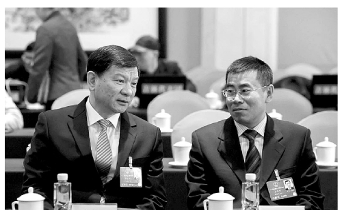 别胜学代表(左)与王松鹤代表(右)探讨。 正义网记者程丁摄