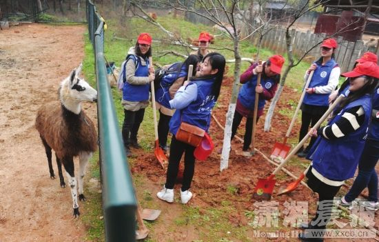 3月12日,一年一度的植树节里,长沙理工大学的20名学生志愿者来到长沙生态动物园,和工作人员们一起新栽了四五十株植物,为春季交配的动物们筑起“遮羞林”。