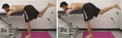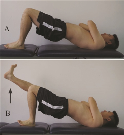4、仰卧背桥 A:双腿支撑;B:单腿支撑