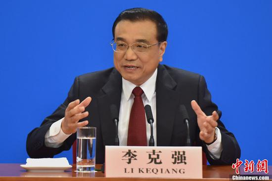 3月16日上午,国务院总理李克强在人民大会堂三楼金色大厅会见采访十二届全国人大四次会议的中外记者,并回答记者提出的问题。中新社记者 金硕 摄