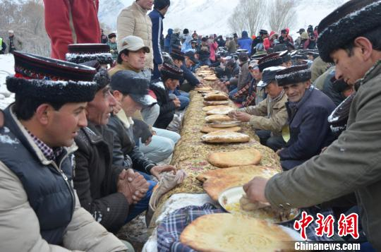 19日早上,天还未亮,新疆塔什库尔干塔吉克自治县(简称塔县)的民众夏米·汗就起床穿上盛装,冒着雪花带上自家新做的馕,赶到该县塔吉克族“引水节”仪式现场。