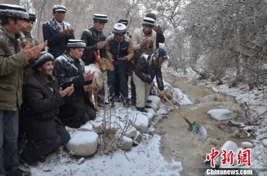 塔县民俗学者艾布力·艾山汗告诉中新社记者,由于塔县地处高原,冬季寒冷,虽然春天到来,但昼夜温差大,引水灌溉的渠道常被冰雪覆盖。一家一户是没有能力把冰砸开进行灌溉,所以居住在一起的人们就会聚集起来,齐心合力将渠道里面的冰雪清理干净,让雪山之水灌溉农田。