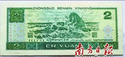 1990年发行的2元纸币。资料图片