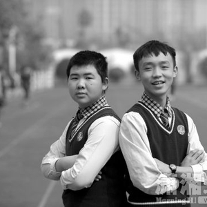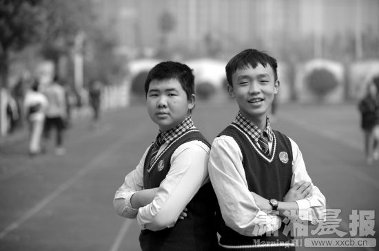 3月18日,长沙金海中学,被西安交通大学少年班录取的段子雄(右)和彭皓。他们将免去中 高考,比同龄人提前进入大学就读。 图/潇湘晨报记者辜鹏博