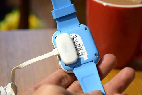 背面的圆弧设计挺不错的,采用触点式充电使得背面整体很简洁,居中则为360儿童智能手表3代产品铭牌信息。
