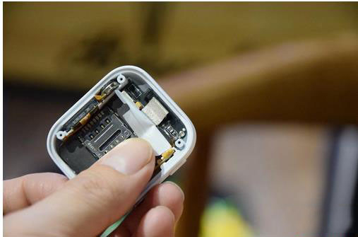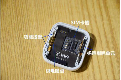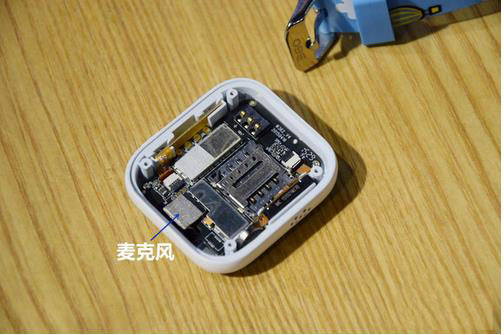 在表盘一侧,能一目了然看到搭载于主板之上的功能按键、SIM卡槽、扬声喇叭单元和供电触点。