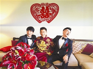 这场婚礼里有特别多的情怀在。而最让网友津津乐道的就是小虎队三个人,继2010年春晚之后再合体。三个人尽管不再是一个组合,却出现在兄弟的婚礼上。伴娘刁难伴郎团的时候要求要唱小虎队经典歌曲,没有事先排练的三个人略略有点不协调,不算动听地唱起《青苹果乐园》,边唱边跳《爱》的手语。80后的青春,90后的童年都回来了好吗?当年他们在一起时风靡的盛况在当时还是属于“前无来者”,现在想来,大概是因为小虎队的出现让大陆地区的歌坛第一次出现了“偶像组合”的概念。对于出生于80年前后的一代人来说,小虎队的走红适时填补了他们的青春印记。