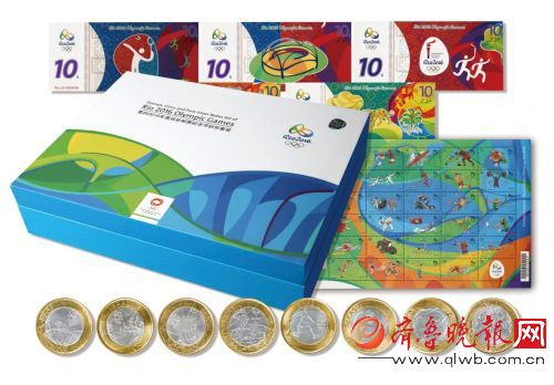 《里约2016年奥运会邮票纪念币钞形套装》共包括: