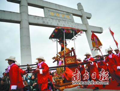 南海神庙的波罗诞,是传承文化的民俗活动。已经成功举办十二届的波罗诞,节目颇多,古老而纯粹的正诞日,即“五子朝王”,最热闹。居住在南海神庙附近的村民们前呼后拥地把神像抬起逐坊逐乡去巡游,这是乡民给南海神贺寿的日子,他们抬着南海神的五个儿子“大案”“元案”“始案”“长案”“祖案”神像,虔诚地向南海神庙行进。