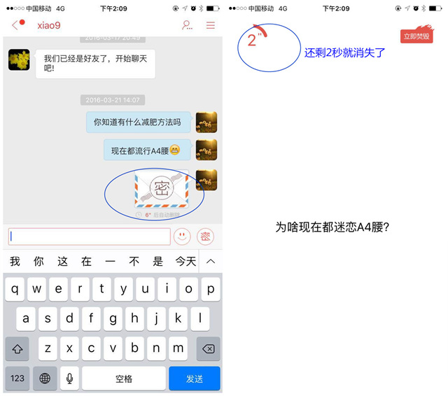 6.聊天方式具有多样性,“密聊”成为最大特色之一。在与小伙伴的聊天过程中,如果不想留下自己的话语痕迹,也可以选择“密信”这一方式,就是“阅后即焚”。如果发给对方“密信”,内容仅有10秒钟的留存时间,10秒过后无任何聊天记录。