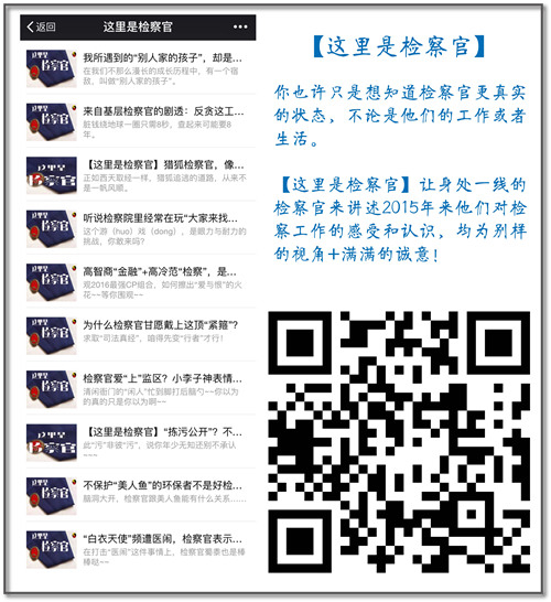记者了解到,“这里是检察官”栏目首次采取“向地方检察官约稿”的报道形式,从一线检察官的视角,讲述在落实2015各项检察工作部署中的故事,力求将枯燥无味的公文改编得新颖有趣,运用活泼生动的网络语言将宏大的检察主题具象化,篇篇精选,角度独到。网友评论说:“让大家领略了新一代高智商检察官的风采!”