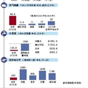 此外,水资源匮乏短板依然明显,北京人均水资源量占国际缺水警戒线水平不到15%。第四,开放创新程度需继续提升,入境旅游人数近年来连续下降,首都机场旅客吞吐量虽有较快增长,但与伦敦、东京等国际城市相比仍有差距。