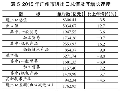 2015年广州市国民经济和社会发展统计公报