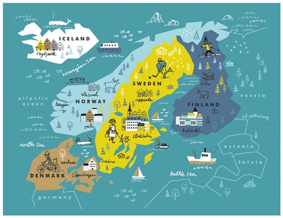 北欧五国也分别具有各自的特点。冰岛的人口最少,每个人都身兼数职,不认为自己完全属于北欧。挪威因为20世纪70年代发现北海石油而暴富,人均GDP成为全世界第二位(2014年),但总被瑞典讥讽“乡巴佬”。芬兰处在东西方的夹缝里,历史上分别受到瑞典和俄罗斯的统治,这让芬兰在北欧五国里最不“欧洲”,最内敛,最边缘。丹麦处在北欧和西欧的中途,贸易经商的传统让国民较为喜爱聚会,开朗热情。瑞典人口最多,地位最重,移民比例最高,品牌输出最盛。
