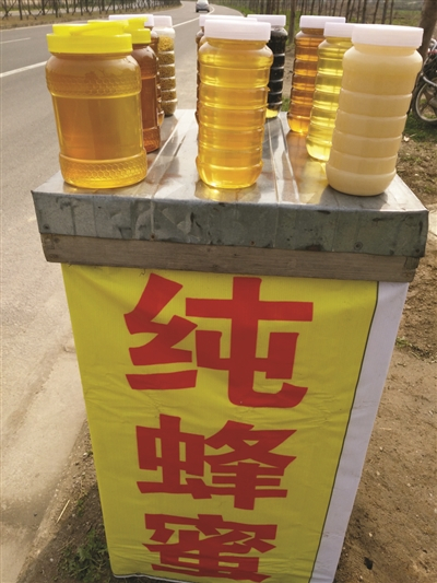 家住南京集庆门大街的孙女士告诉记者,她一直以来都有喝蜂蜜的习惯。前天,她在南京板桥附近一处油菜花盛开的马路边,看到一个养蜂人在卖蜂蜜。养蜂人说自己这蜂蜜是纯天然,卖50元一瓶,不还价。孙女士看到蜂蜜颜色清亮,比较粘稠,价格也适中,就买了4瓶,可回家一品尝都说口感不对,懂行的邻居也认为是勾兑出来的假蜂蜜。