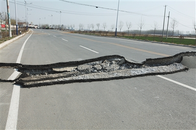 昨日12时12分,山东临沂市平邑县发生3.1级地震,震源深度0千米,道路现裂缝。图/CFP