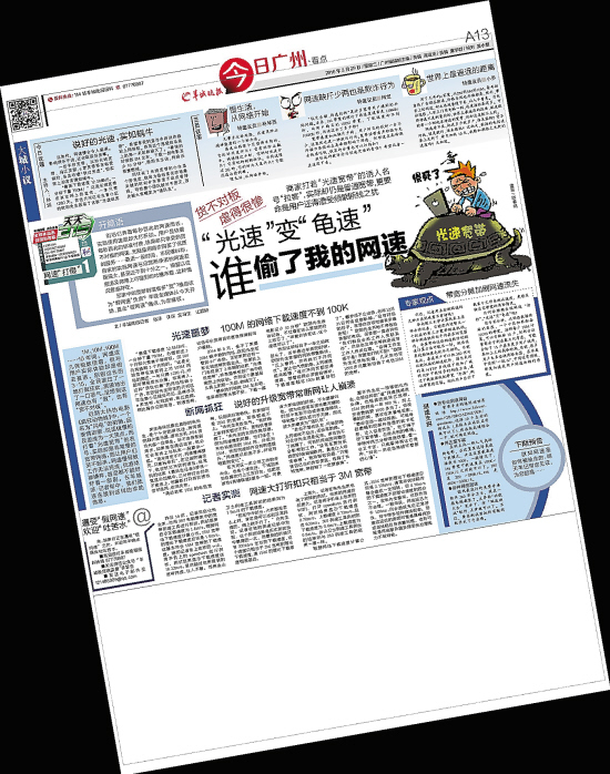 明天羊城晚报全媒体将继续追问“假网速”痛点,部分小区竟然连选择宽带运营商的权利都没有,羊记带您见证,为您维权。