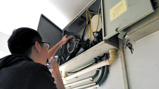26日下午1时,互通宽带的维修师傅查看朱先生反映网速慢的问题。